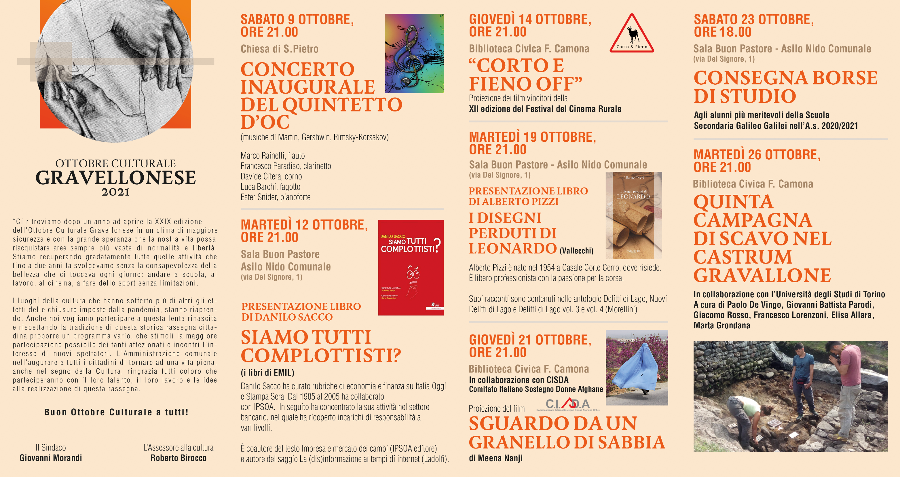 Dal 9 ottobre al 6 novembre 2021 si terrà la XXIX edizione dell'Ottobre Culturale Gravellonese. In allegato il programma. L'ingresso è gratuito. Per partecipare agli eventi è necessario esibire il Green Pass. L'uso della mascherina è obbligatorio.