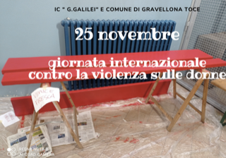 Nell'ambito delle attività interdisciplinari di educazione civica dell'Istituto Comprensivo "G. Galilei", si terrà la fase conclusiva del progetto "25 novembre, contro la violenza sulle donne" con l'inaugurazione delle panchine rosse realizzate dagli alunni delle classi terze della Scuola Media in collaborazione con l'Amministrazione Comunale di Gravellona Toce.