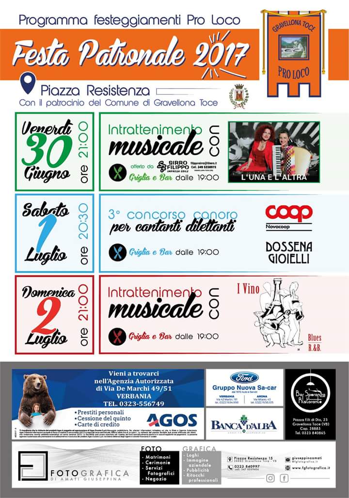 In allegato il programma di eventi organizzato dall'Ass. Pro Loco in occasione della festa patronale di San Pietro 2017.