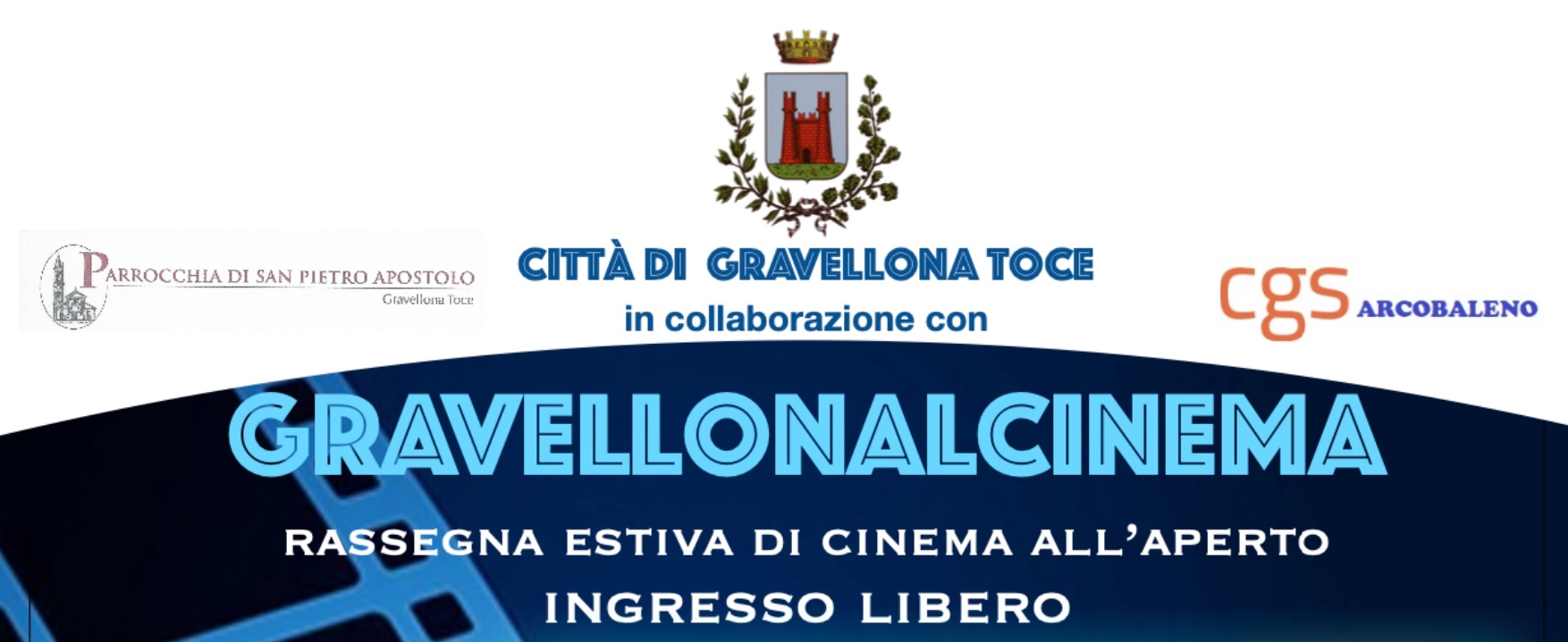 Il Comune di Gravellona Toce, in collaborazione con l'Associazione CGS Arcobaleno e la Parrocchia di San Pietro Apostolo, organizza la rassegna di cinema all'aperto "Gravellonalcinema" . Ingresso libero. Gli appuntamenti sono i seguenti: